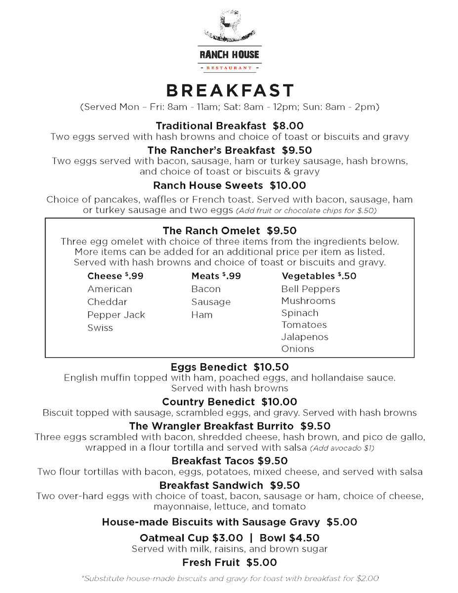 The menu at Rocking 'R' Ranch House Restaurant offers a warm and inviting mix of classic American comfort dishes and thoughtfully crafted plates. It’s the kind of menu where familiar favorites like Chicken Fried Steak and Biscuits and Gravy sit comfortably alongside heartier options such as Filet Mignon and Strogonoff. Whether you're looking for a satisfying lunch, a casual dinner, or a leisurely brunch, the selection supports moments that feel relaxed and welcoming.